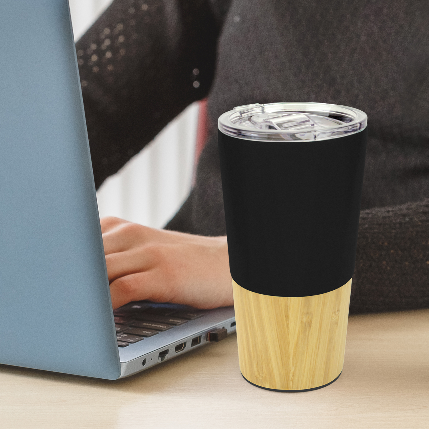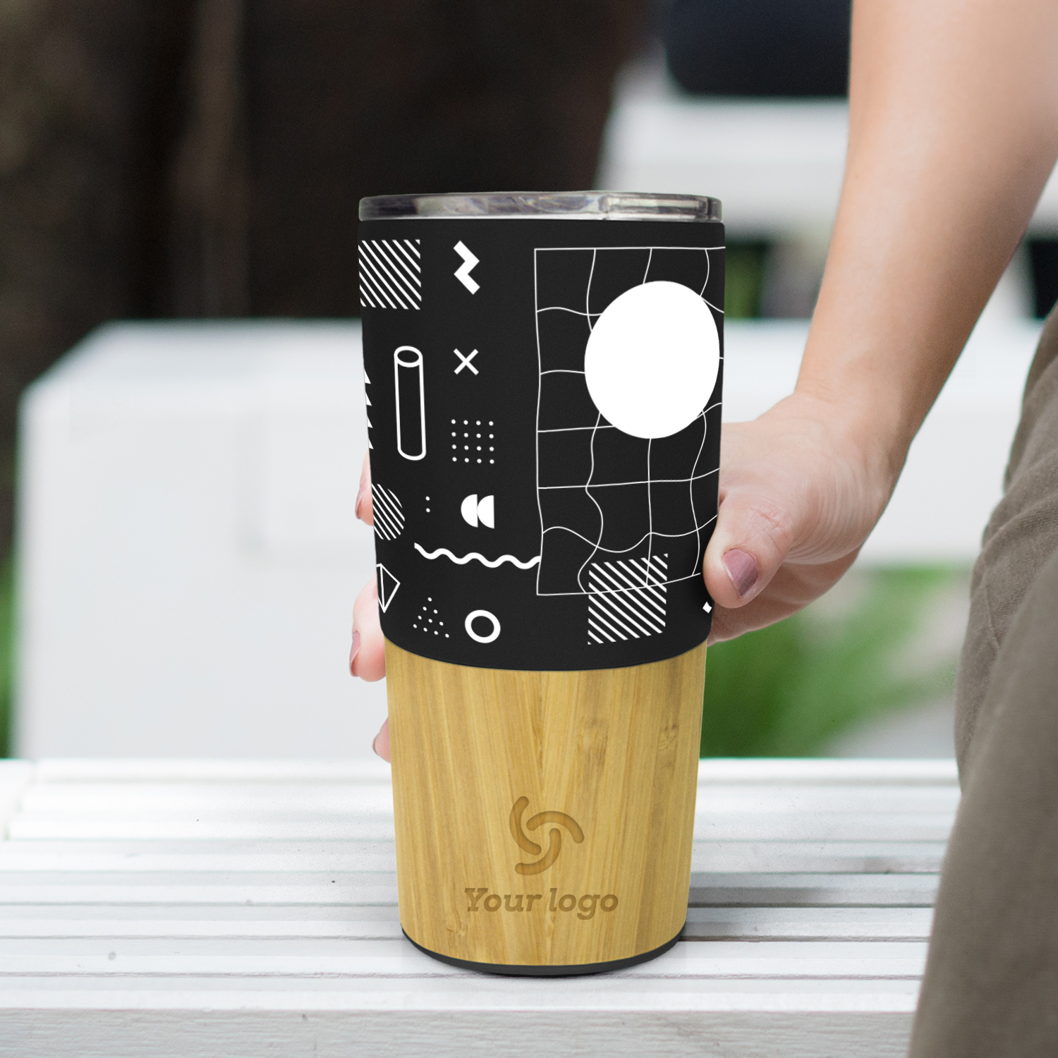 The bamboo bottom cup not only boasts a large branding area, but also comes in a recognisable coffee cup shape and features a bamboo lined base, giving it a desirable eco-friendly look and feel. The reusable cup features a double-walled insulated SUS 304 stainless steel body, keeping your beverages hot or cold for hours. The cup has a generous capacity of 500ml, which can be easily refilled throughout the day. The cup can be fully wrap printed or wrap engraved, making it a ideal for any brand looking for a reusable cup with a sustainable finish.