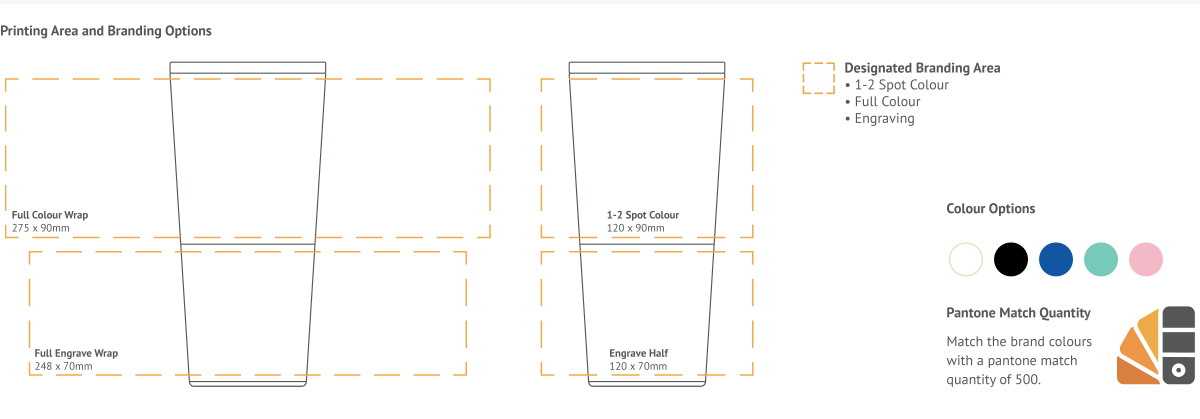 Printing Options: 1-4 Spot Colour, Full Colour, Laser Engraving