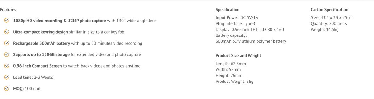 - Rechargeable 300mAh battery with up to 50 minutes video recording