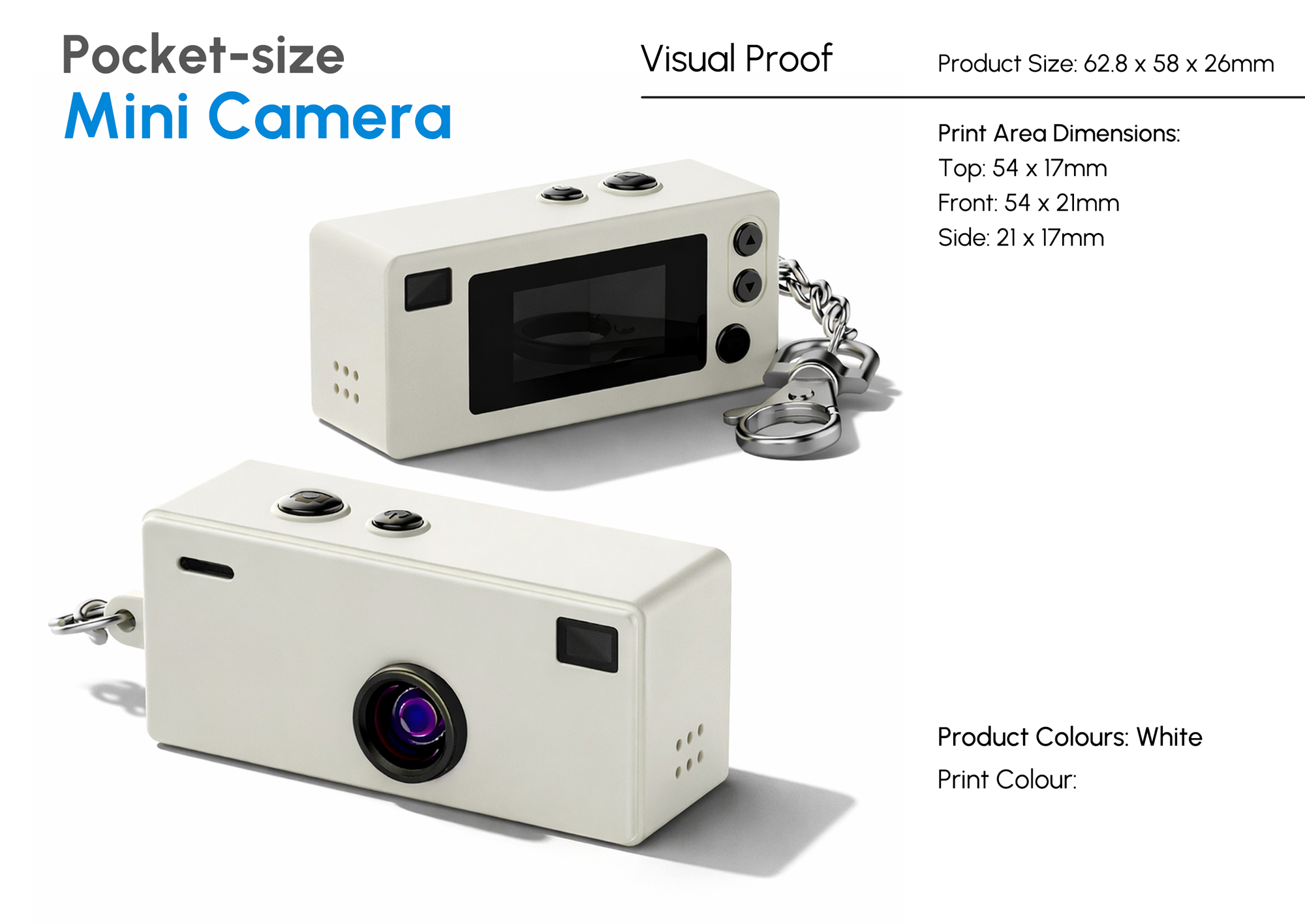 Capture big moments with a camera that’s no bigger than a car key fob. This ultra-compact HD mini camera keyring delivers impressive performance in a pocket-sized design, recording 1080p video and capturing 12MP photos through a 130° wide-angle lens so you never miss the action. At just 26g- roughly the weight of a standard AA battery, it’s light enough to clip onto keys, bags or lanyards for everyday carry. A fun and functional promotional gadget that blends novelty, practicality and tech appeal, making it perfect for events, giveaways and tech-focused campaigns, complete with full colour branding options for maximum brand visibility.