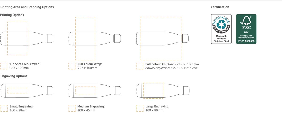 Printing Options: 1-4 Spot Colour, Full Colour, Laser Engraving, 1-2 Spot Colour